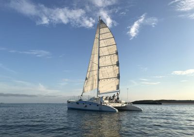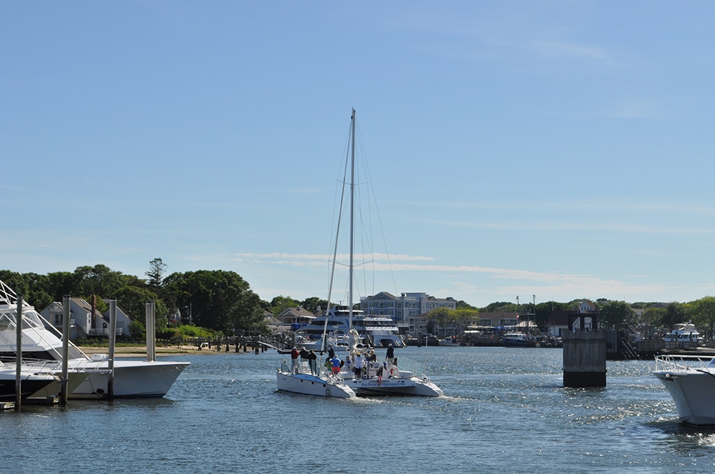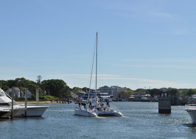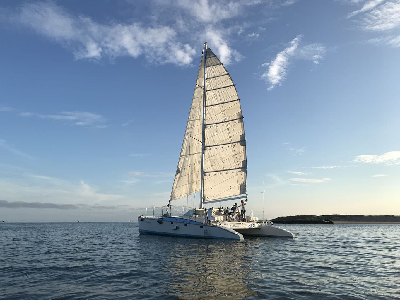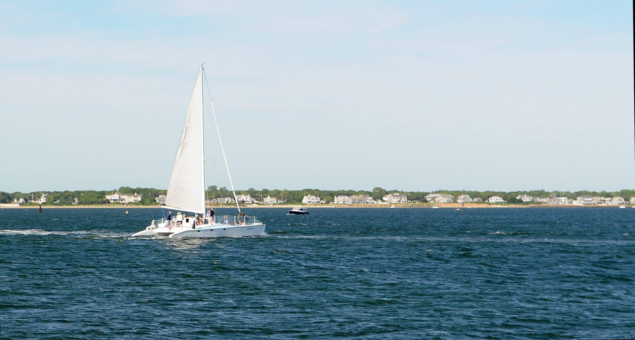 The Bay Breeze is a 45’ Lock Crowther designed catamaran. At 23’ wide, the Bay Breeze is a very stable platform for sailing. Come out on a 2 hour public afternoon or sunset sail, or charter the boat privately with up to 25 of your closest friends and family. The Bay Breeze is a Coast Guard inspected and certified vessel. We sail out of Hyannis Inner Harbor into Lewis Bay and Nantucket Sound.